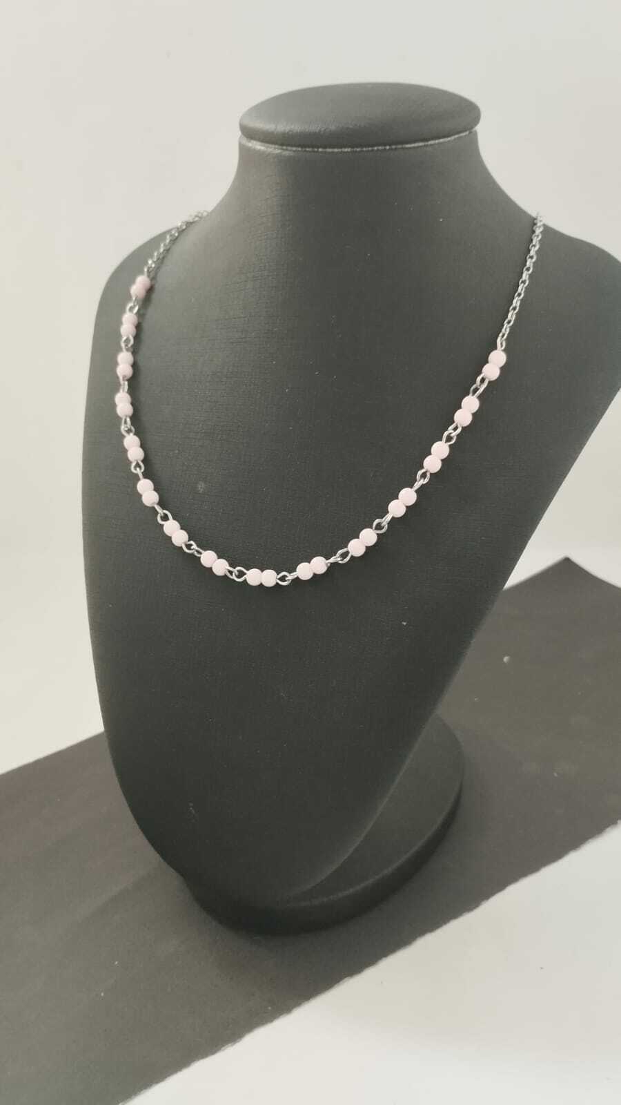 Informações Técnicas: - Material: Aço Inox - Comprimento: 40 cm - Design: Miçanga Rosa - Acabamento: Polido - Hipoalergênico: Sim - Garantia: Contra defeitos de fabricação