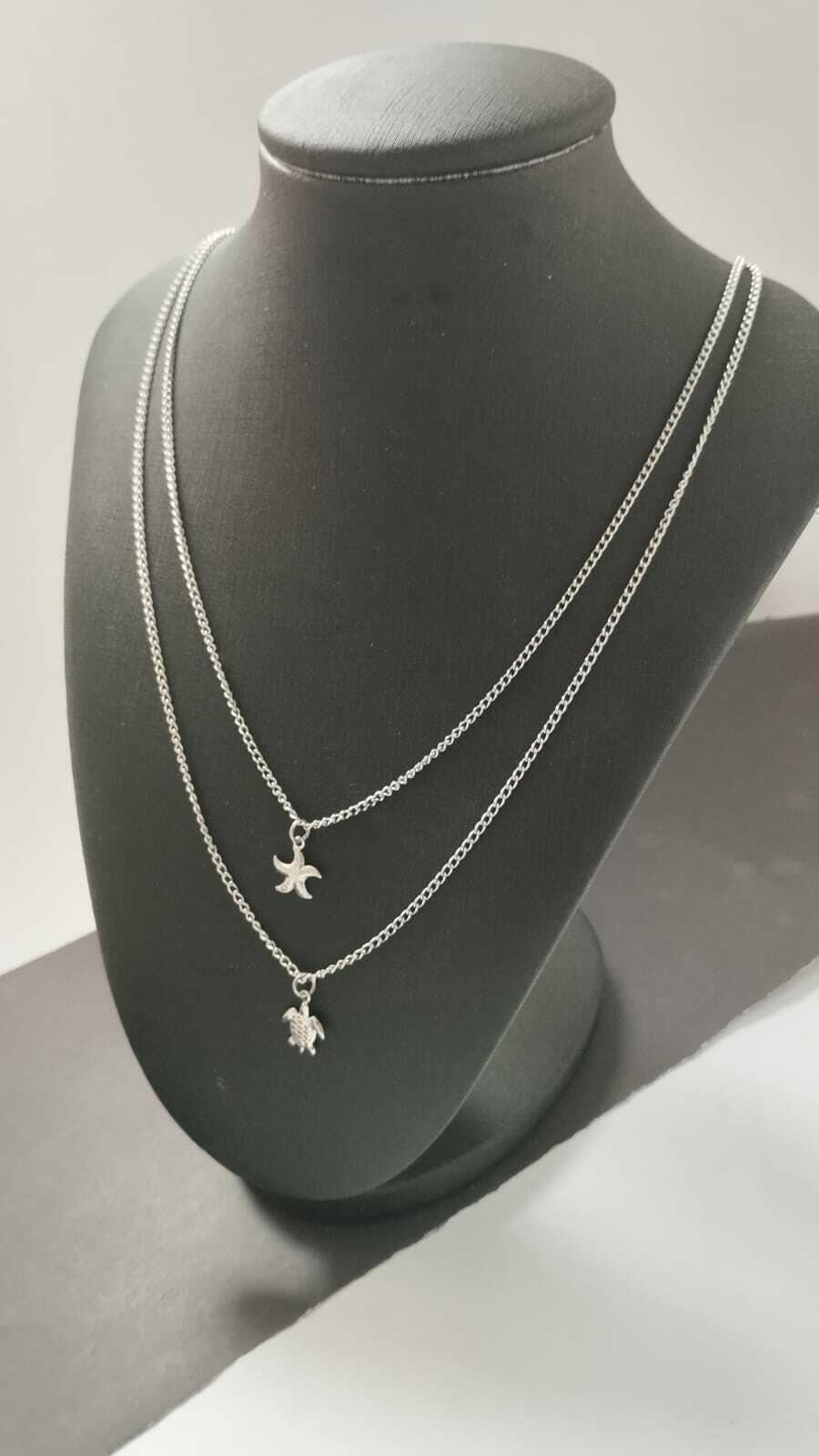 Colar Duplo Estrela do Mar P e Tartaruga em Aço Inox