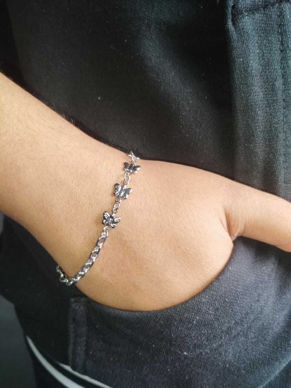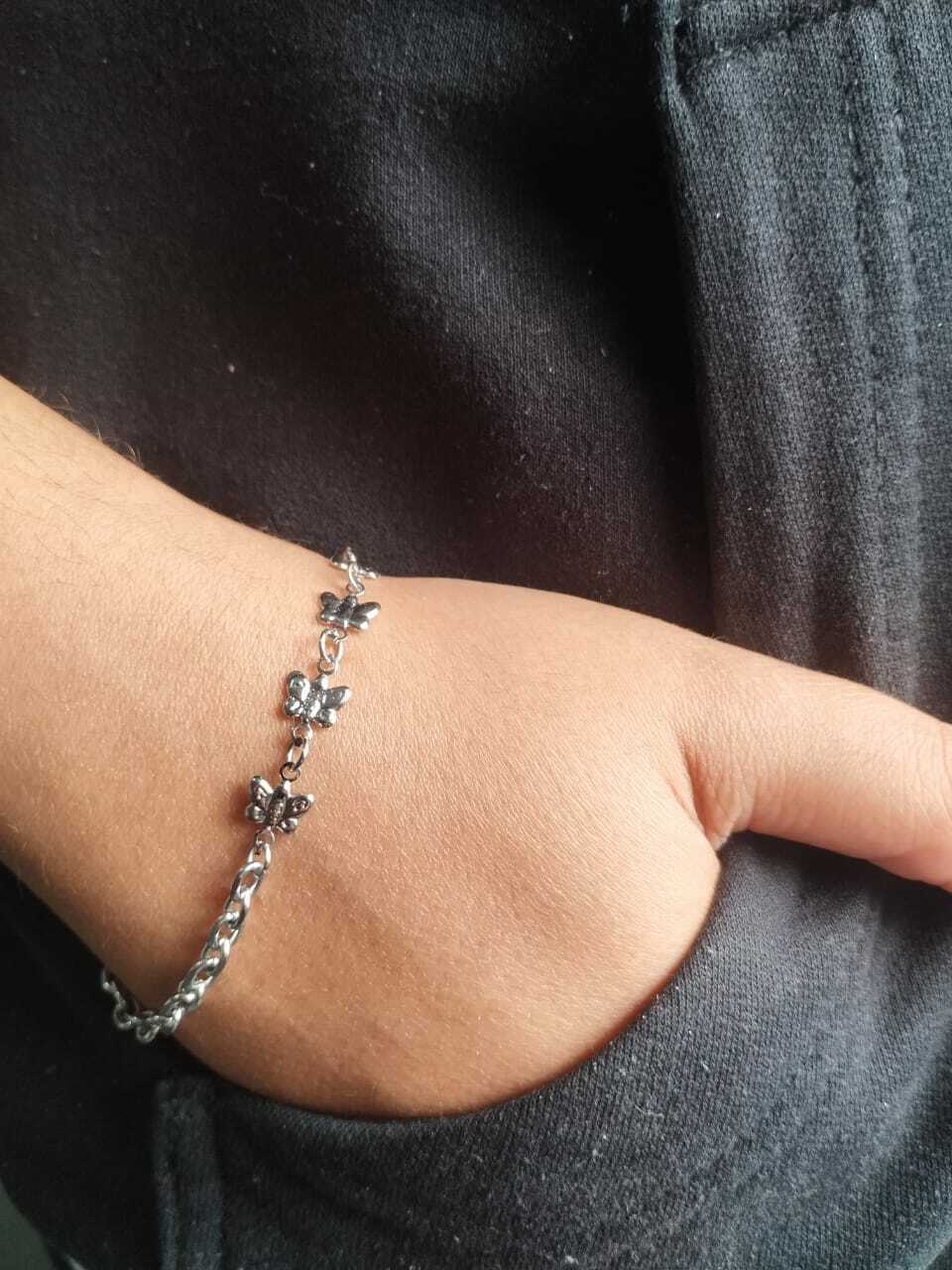 Garanta já a sua Pulseira Corrente BCOL046 com 7 Pingentes Borboleta em Aço Inox e sinta a diferença de um acessório feito para durar!